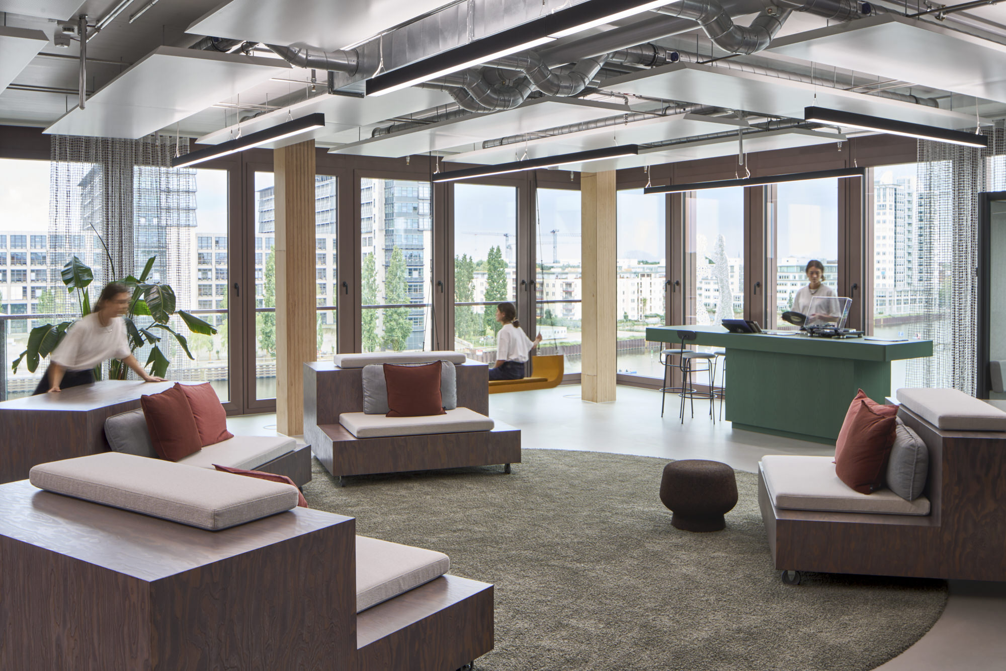 Arbeiten am längsten Spreeufer in Berlin: vom Treffpunkt an der Promenade über Meetings im Ufercafé bis zum morgendlichen Yoga auf der Dachterrasse