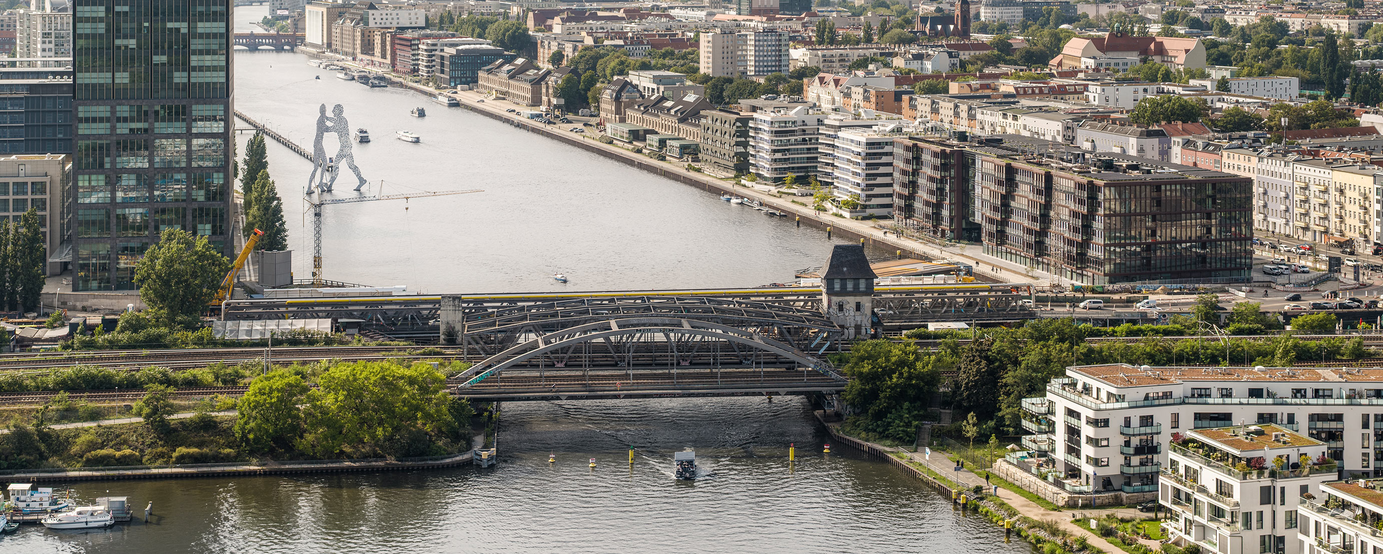 Direkt an der Spree, entlang einer der längsten Uferpromenaden der Stadt, eingebettet zwischen Szene, Substanz und Sichtachsen